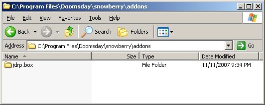 Unpack the 'jdrp.box' folder from the JDRP archive to the 'addons', so the resulting directory structure will be something like this, depending on the Doomsday folder in your system: