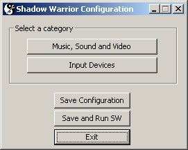 Start 'Setup.exe' from the same directory to start JFShadowWarrior configuration.